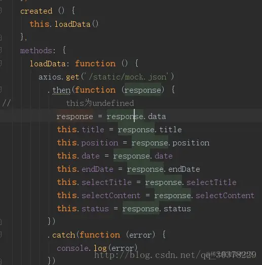 Vue中this始终指向Vue,但axios中this为undefined 1024小神 2020-12-04 113 阅读1分钟 在Vue中this始终指向Vue,但axios中this为undefined,例如: 若需要赋值给变量用以渲染数据,可以通过=>函数,这时this为Vue 或者可以直接通过: let that = this 将this保存在that中,再在函数中使用that均可 被坑了很久,一直打印出来undefined,终于解决了