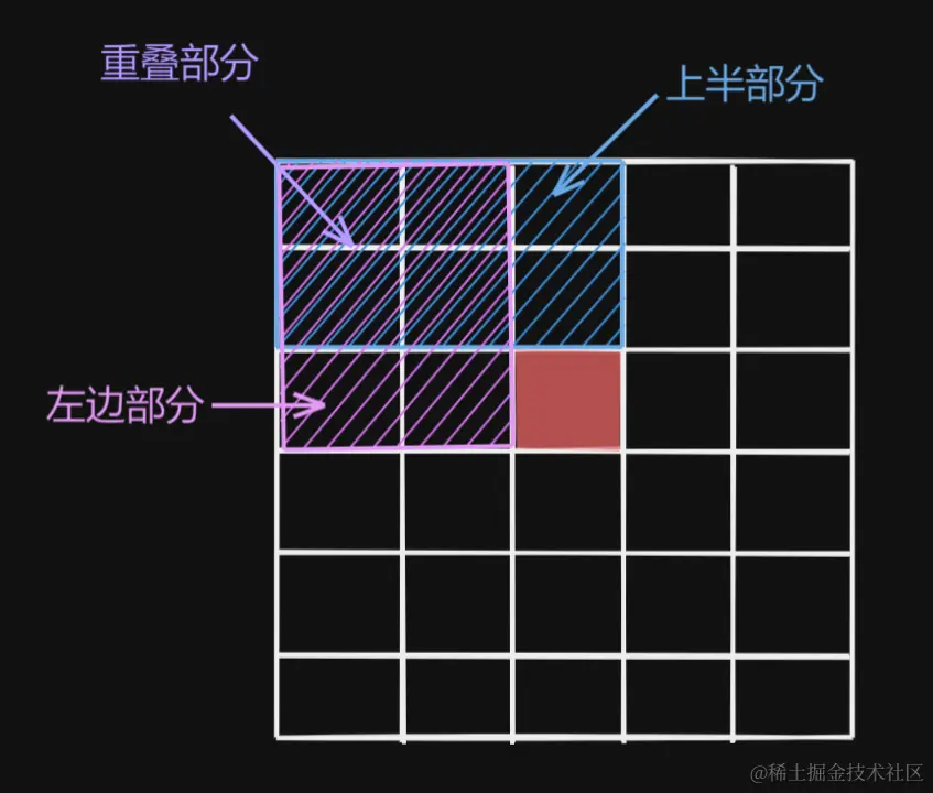 // 本身 + 上部分 + 左部分 - 重复部分