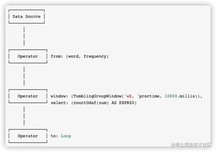 SQL语句对应的执行计划大致如下,我们能看出来 accumulate & merge 都在 Window 中处理。