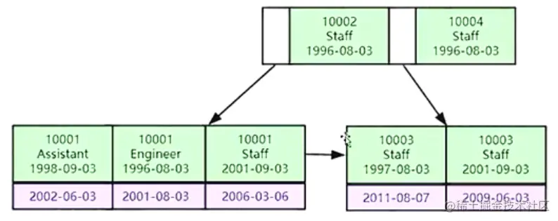 联合索引树的索引的存储规则是完全遵循创建索引的顺序去排列的,而在查询的时候,先是比较第一个字段,第一个字段确定了,才知道下一个节点的指针往哪走,如图,在第一个字段如果都是10001的情况下,第二个字段从左到右是有序的