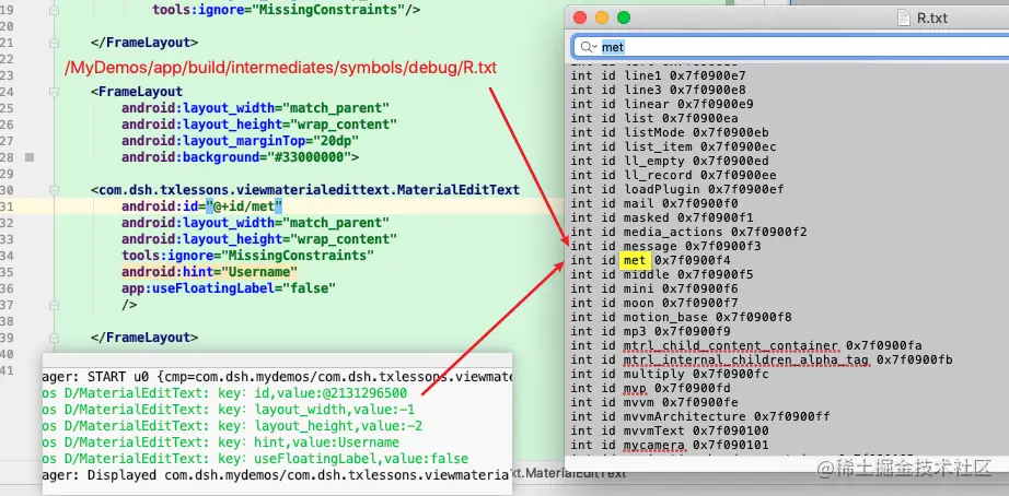 <resources> <!-- MaterialEditText --> <declare-styleable name="MaterialEditText"> <attr name="useFloatingLabel" format="boolean"/> </declare-styleable> </resources> - 我们继续深入了解下attrs是干什么的