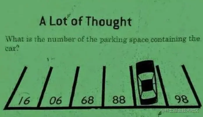 这道题中有六个停车位,每个车位上都有一个数字,然而有一个车位上的数字被汽车挡住了,要求学生们在20秒内答出这个被挡住的车位上的数字。这是中国香港小学一道给6岁儿童设计的“停车场智力题”。(大家可以在评论区留下答案)