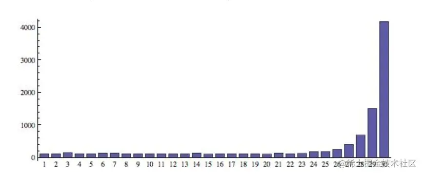当 n=30 时,测试一万次,可以看到有 4000 次我们拿到了最大的钻石。