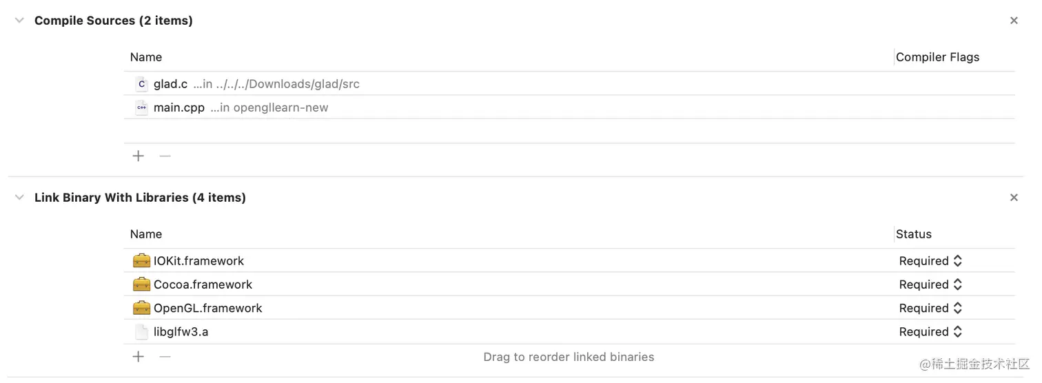 - 注意,glad.c 需要一同与 source 一同编译,在 compile source 处