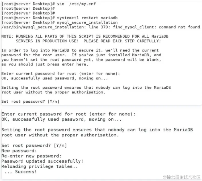 恢复服务器,需要使用命令 sudo systemctl start mariadb.service重启数据库服务。