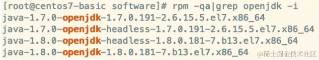 如果是自己在虚拟机上安装的centos7.x或者centos6.x,则会默认帮你安装好OpenJDK,如下截图