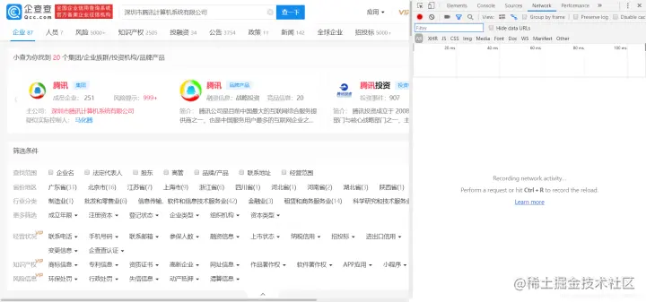1、进入企查查官网进行注册并登录。 2、然后按F12弹出开发者工具,点击Network,然后你会看到企查查这个网址,点击一下 PS:如有需要Python学习资料的小伙伴可以加点击下方链接自行获取