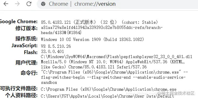 在网址栏输入:chrome://version PS:如有需要Python学习资料的小伙伴可以加点击下方链接自行获取