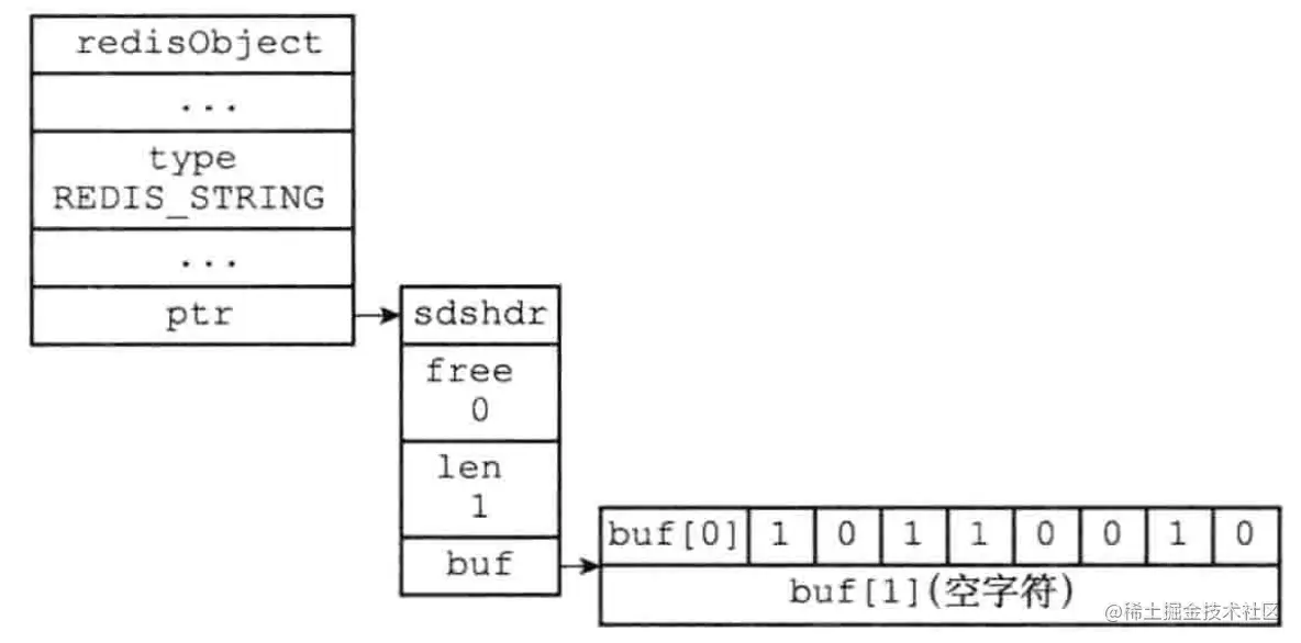 使用字符串对象表示位数组,因为字符串对象使用SDS数据结构是二进制安全的