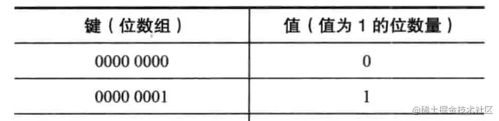查表算法,保存一张表,表的键为某种排列的位数组,值为该位数组中1的个数