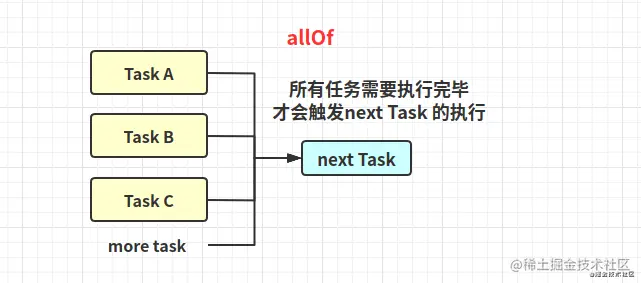 任务完成则运行action,不关心上一个任务的结果,无返回值