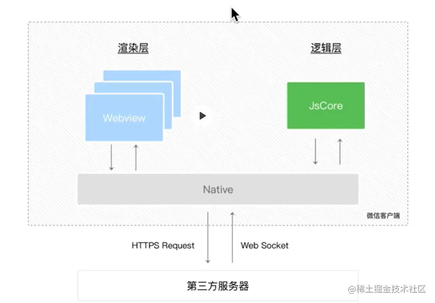 简述页面渲染三种方式 宋宋前端爱好者 2020-12-05 229 阅读1分钟 纯web渲染 ionic 纯native渲染 React Native weex 把写的代码转正对应平台的原生代码 hybrid渲染 即web和native的渲染结合 uniapp 微信小程序 (80%-90%的组件是web渲染) 小程序 分为两个线程进行交互 渲染层webview 逻辑层 jscore 运行环境