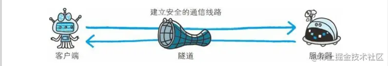 隧道可按要求建立起一条与其他服务器的通信线路,届时使用 SSL等加密手段进行通信。隧道的目的是确保客户端能与服务器进行安全的通信。