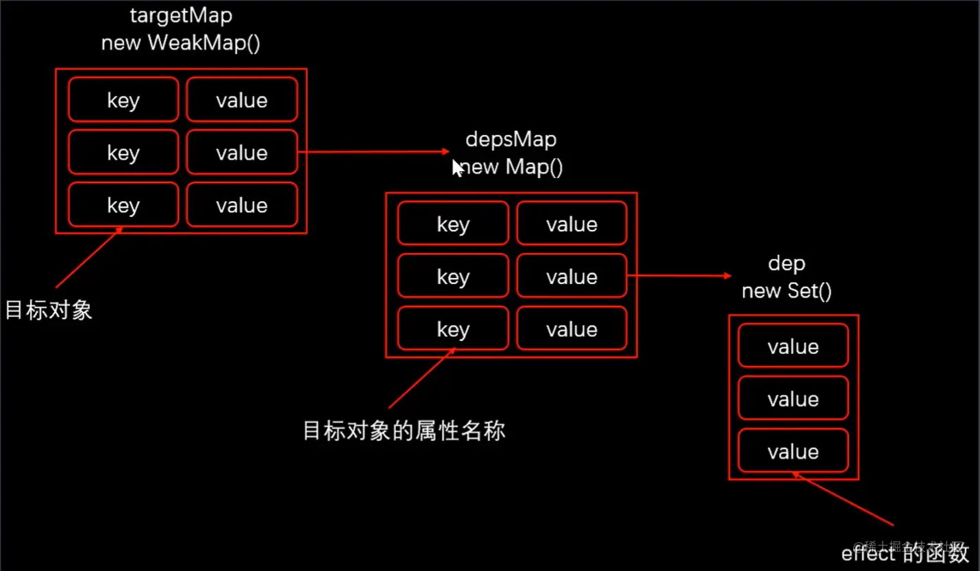 上述模拟Vue.js3.0响应式系统相关所有代码: