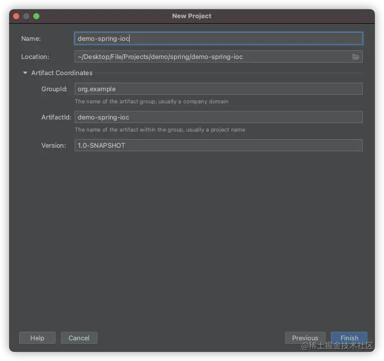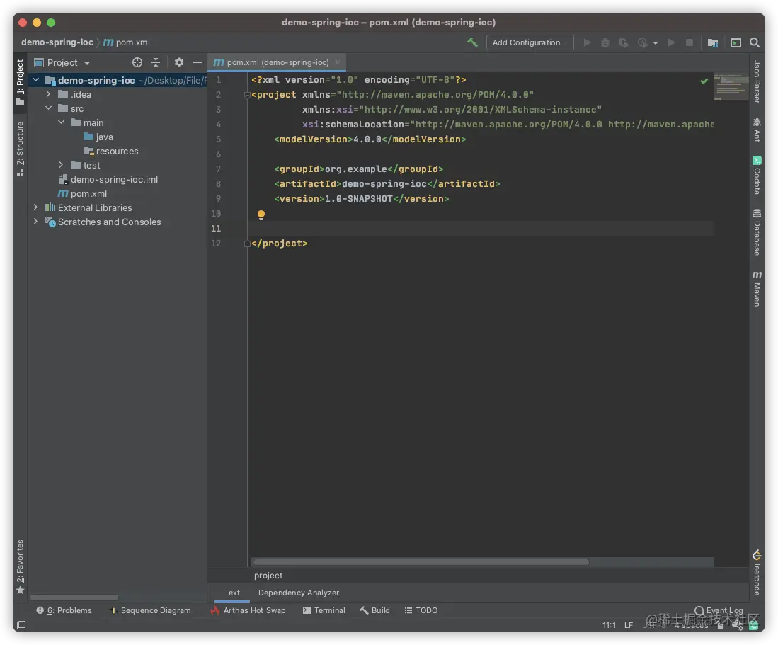 Finish 后,进入创建的 demo-spring-ioc 工程,如下: