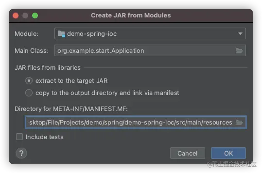 - Directory for META-INF/MANIGEST.MF:我们执行这些配置其实就是为了生成一个 META-INF/MANIGEST.MF 文件,这里是配置 META-INF/MANIGEST.MF 文件的输出位置,一般至于 resource 下