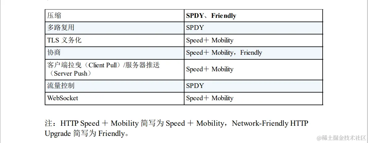 HTTP Speed + Mobility 由微软公司起草,是用于改善并提高移动端通信时的通信速度和性能的标准。它建立在 Google 公司提出的 SPDY 与 WebSocket 的基础之上。