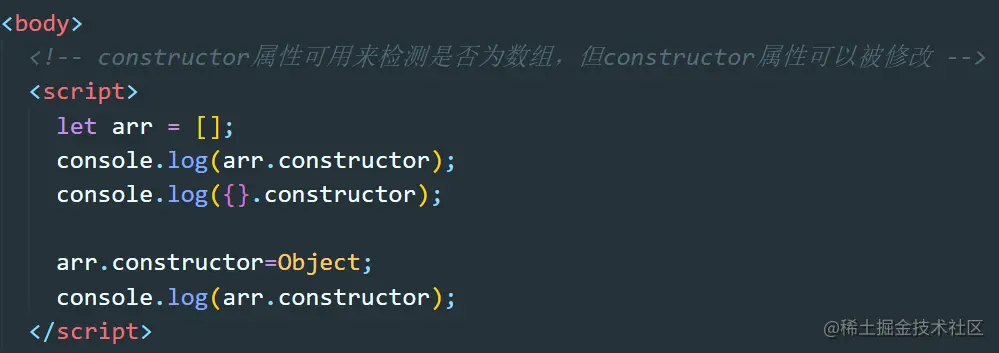 - 单一的全局环境下可以正确检测,如果存在两个版本以上的Array构造函数,则无法正确检测