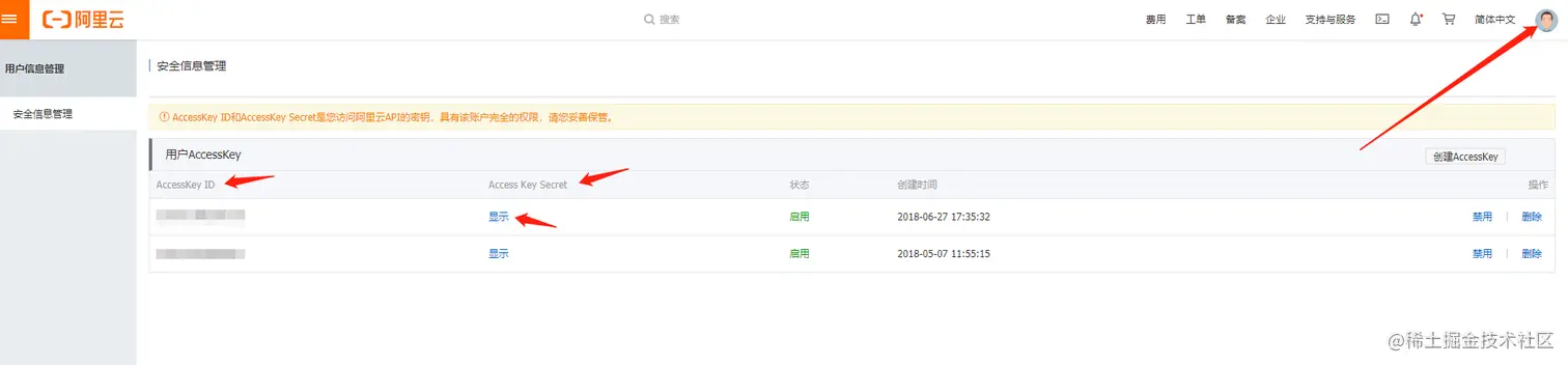 点击自己的头像,选择accesskeys,新建一个key就可以了,我是新建了公共的。
