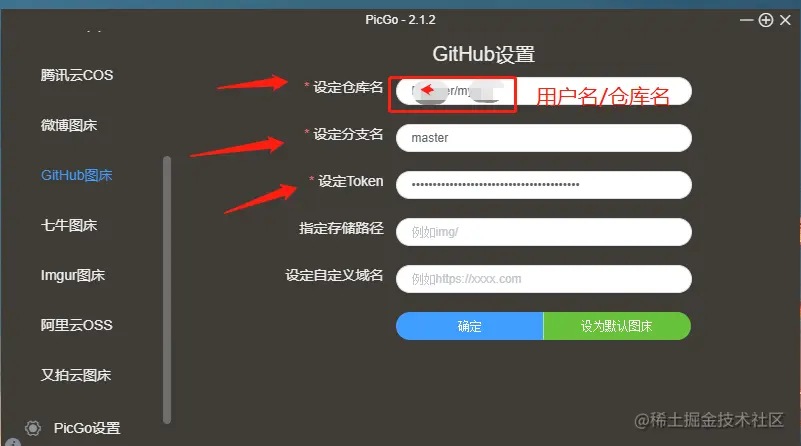 然后打开PicGo,选择Github图床,设置好就可以了。