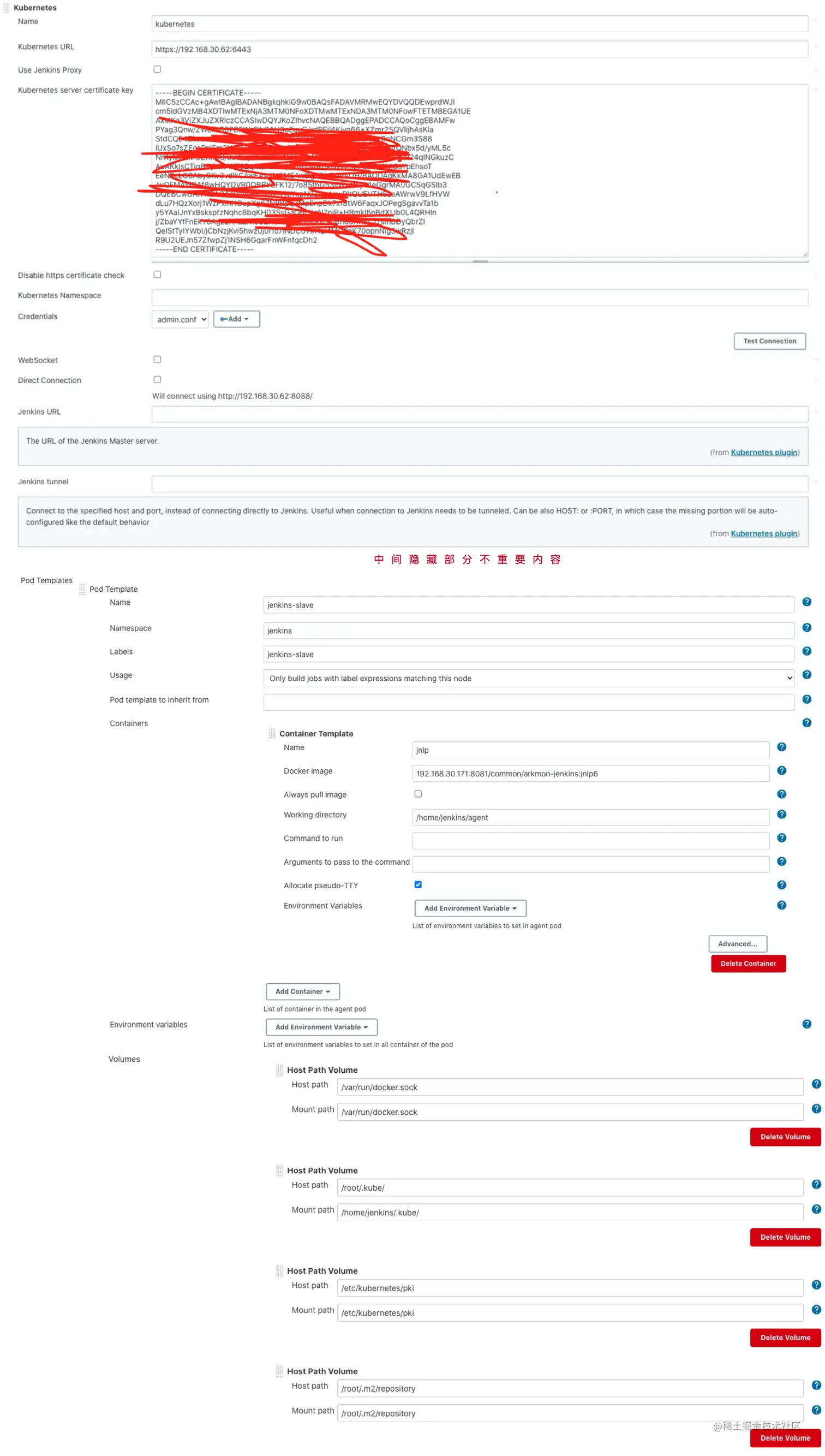 - Configure Clouds: 这里主要是配置Kubernetes的相关参数和pod的模板文件(我的理解就是:用GUI的方式配置编写一个k8s部署服务的yaml文件)