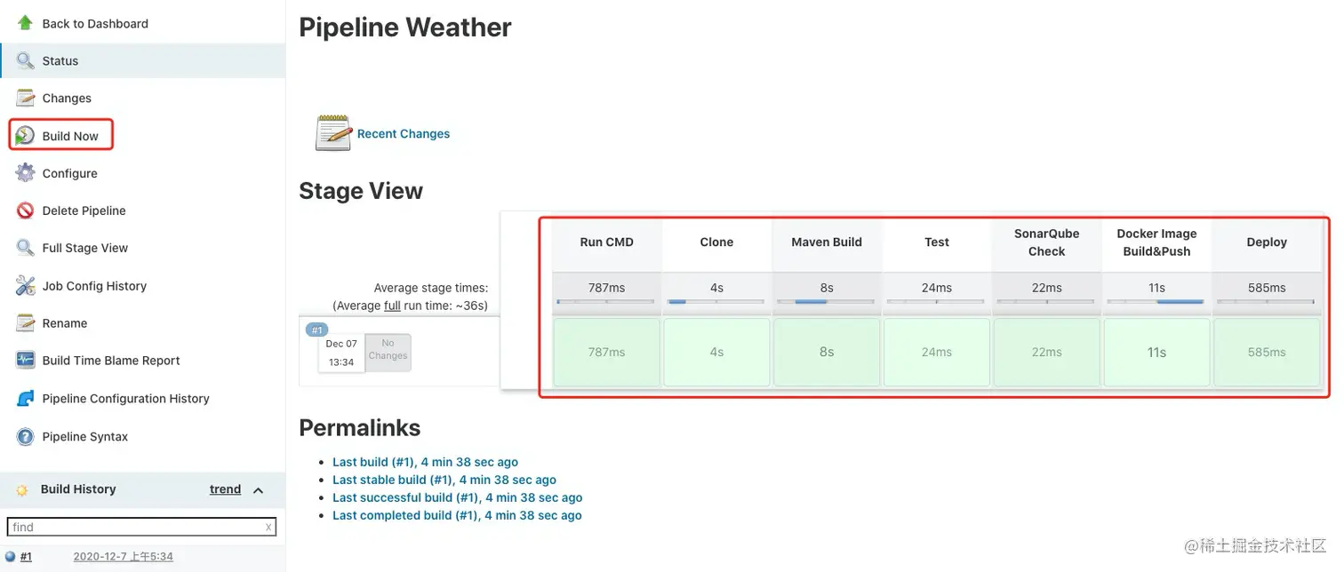 一次完整的CICD,包含:代码拉取(Clone)-->构建jar包(Maven Build)-- 单元测试(Unit Test)--> 静态代码检查(SonarQube Check)--> 构建镜像(Docker Build)--> 推送镜像到私有仓库(Docker Push)--> 部署k8s服务(Deploy)