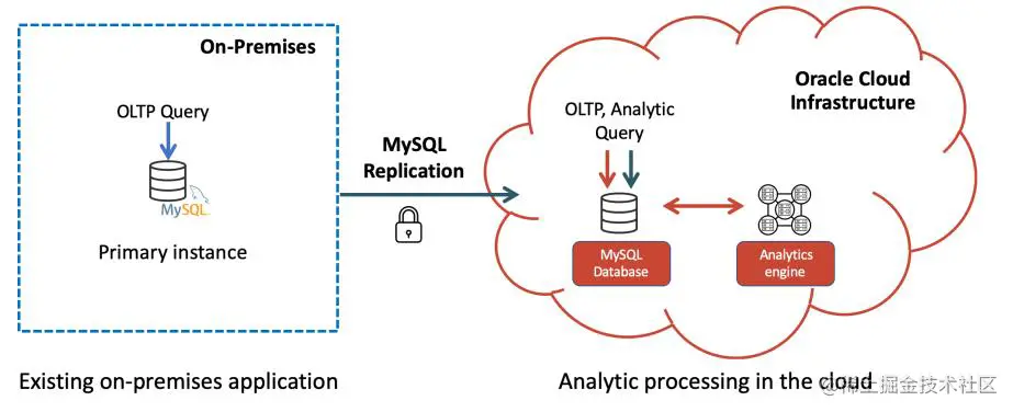此外,针对混合云场景(即无法将数据部署到云端的客户),可以利用 MySQL 复制将本地 MySQL 数据复制到 MySQL 分析引擎,同样不需要 ETL。目前 MAE 仅在 Oracle Cloud Infrastructure (OCI) Gen 2 hardware 平台提供。