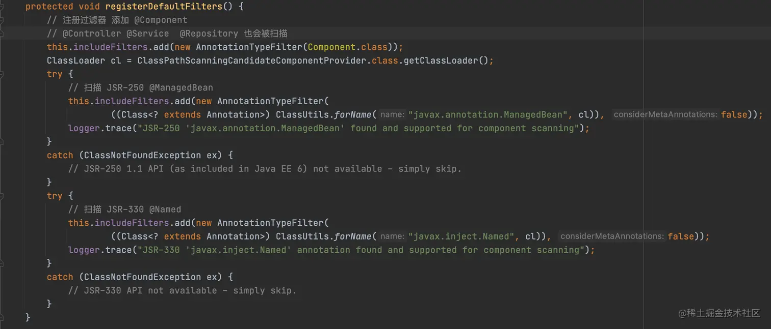 也会注册添加 JSR-250 的 @ManagedBean 和 JSR-330 的 @Named 注解。