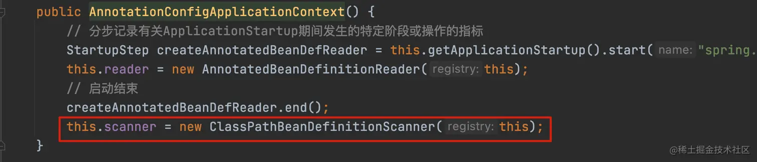 this.scanner = new ClassPathBeanDefinitionScanner(this); 代码如下所示: