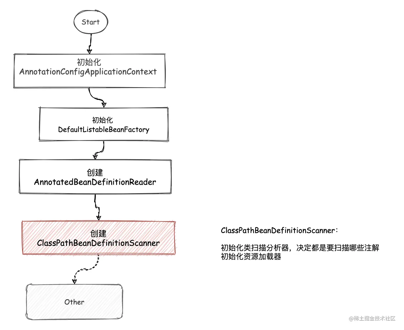 AnnotationConfigApplicationContext 构造函数除了初始化一个 reader ,还有一个 scanner,下面来一起看看 ClassPathBeanDefinitionScanner 都有什么逻辑。