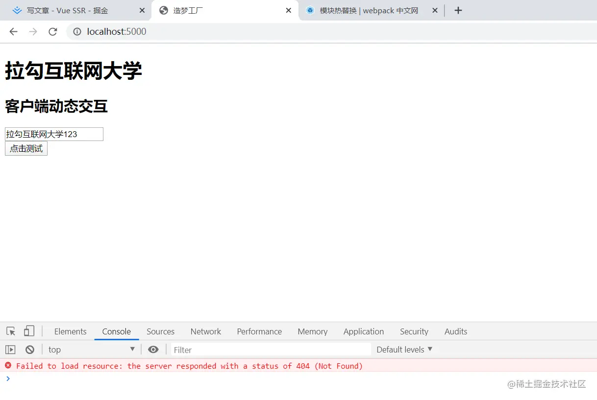 也就是说我们要在服务端获取异步接口数据,交给 Vue 组件去渲染。 我们首先想到的肯定是在组件的生命周期钩子中请求获取数据渲染页面,那我们可以顺着这个思路来试 一下。 在组件中添加生命周期钩子,beforeCreate 和 created,服务端渲染仅支持这两个钩子函数的调用。 然后下一个问题是如何在服务端发送请求?依然使用 axios,axios 既可以运行在客户端也可以运行在 服务端,因为它对不同的环境做了适配处理,在客户端是基于浏览器的 XMLHttpRequest 请求对象, 在服务端是基于 Node.js 中的 http 模块实现,无论是底层是什么,上层的使用方式都是一样的。