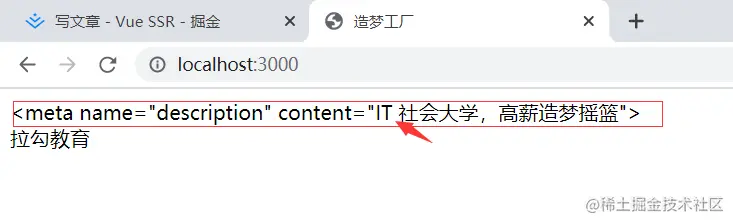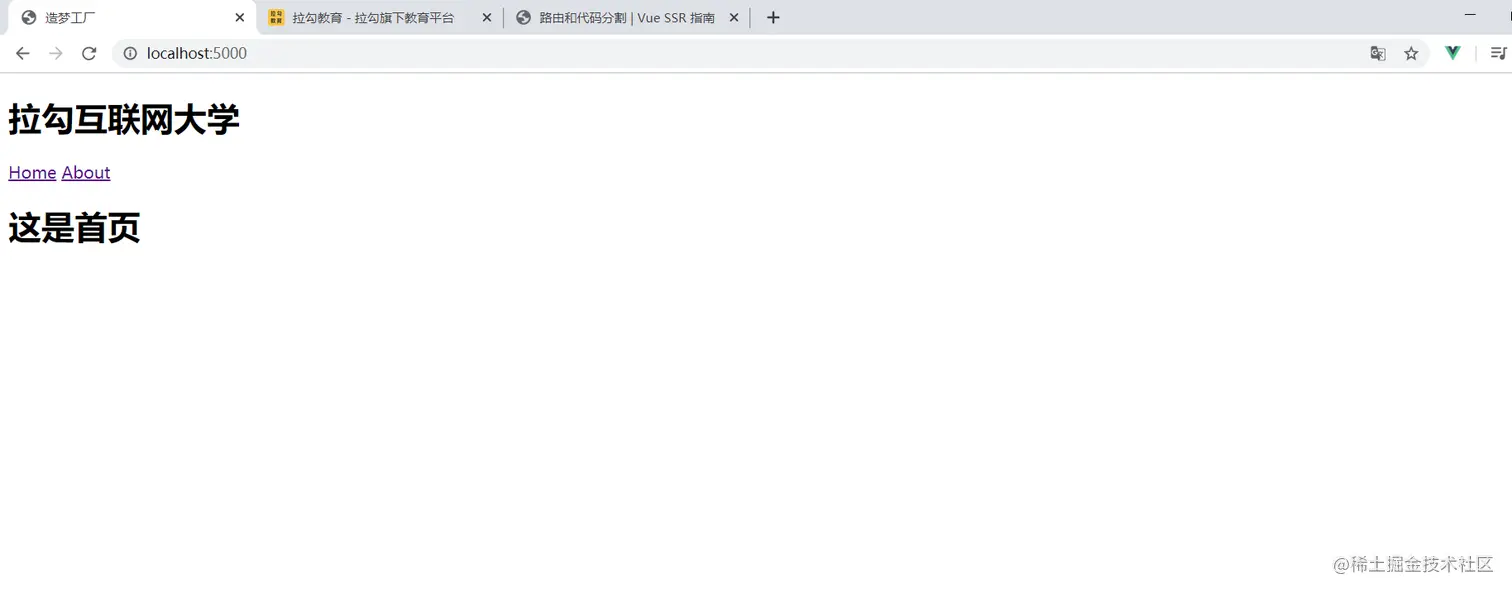 我们可以看到结果是我们想要的了 在上面的示例中我们只用到了titleTemplate,我们还可以查阅vue-meta的文档,使用其它更多的属性。具体链接可查阅文档