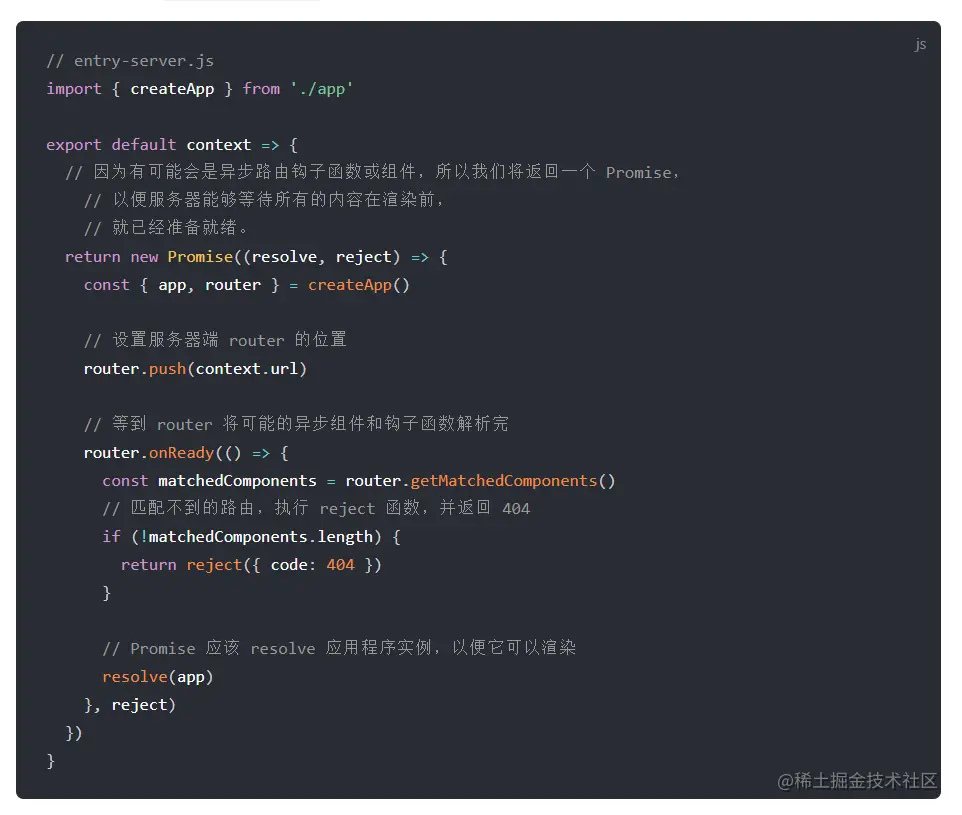 接下来我们就按照官方文档给出的参考来把服务端渲染中的数据预取以及状态管理来处理一下。 通过官方文档我们可以看到,它的核心思路就是把在服务端渲染期间获取的数据存储到 Vuex 容器中, 然后把容器中的数据同步到客户端,这样就保持了前后端渲染的数据状态同步,避免了客户端重新渲染 的问题。