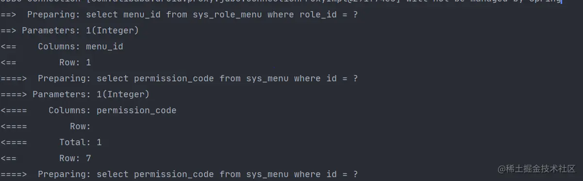 预想查询出List<permissionCode>,但返回的却是List<MenuID> ,而且打印出的sql语句里,也没有执行getPermissionCodeByMenuID这个方法对应的sql语句。