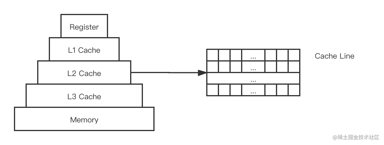 计算机存储器是分层次的,离 CPU 越近的存储器速度越快,每字节的成本越高,同时容量也越小。这里我们要讲的 CPU Cache 指的是 L1 Cache,L2 Cache 和 L3 Cache,也是我们常说的高速缓存。CPU Cache 最小缓存单元为 Cache Line,x86_64 CPU 系列为 64Bytes。后面我们要讲到的 false sharing 主要是和 Cache Line 有关