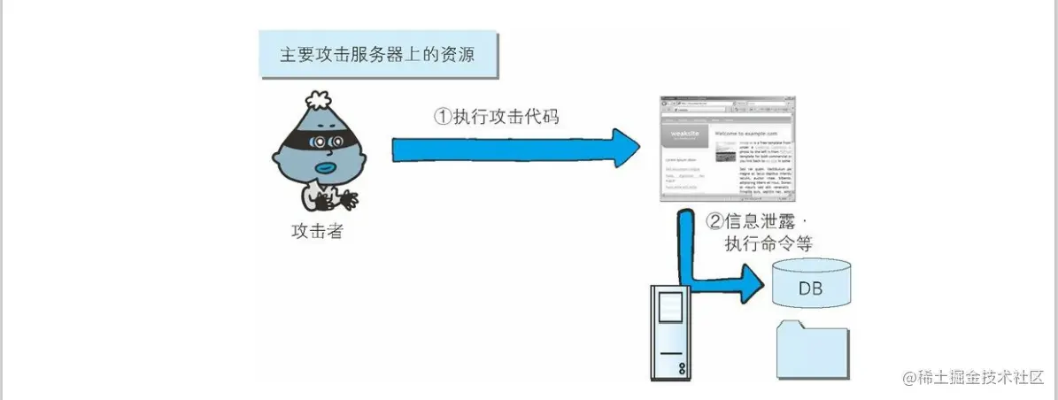攻击者在一个服务器上书写一些获取表单信息或者获取cookie的脚本,然后再利用欺诈邮件或者网页让用户触发该脚本,该脚本就会自动将用户信息发送到攻击者的服务器上,而且用户并不知情。