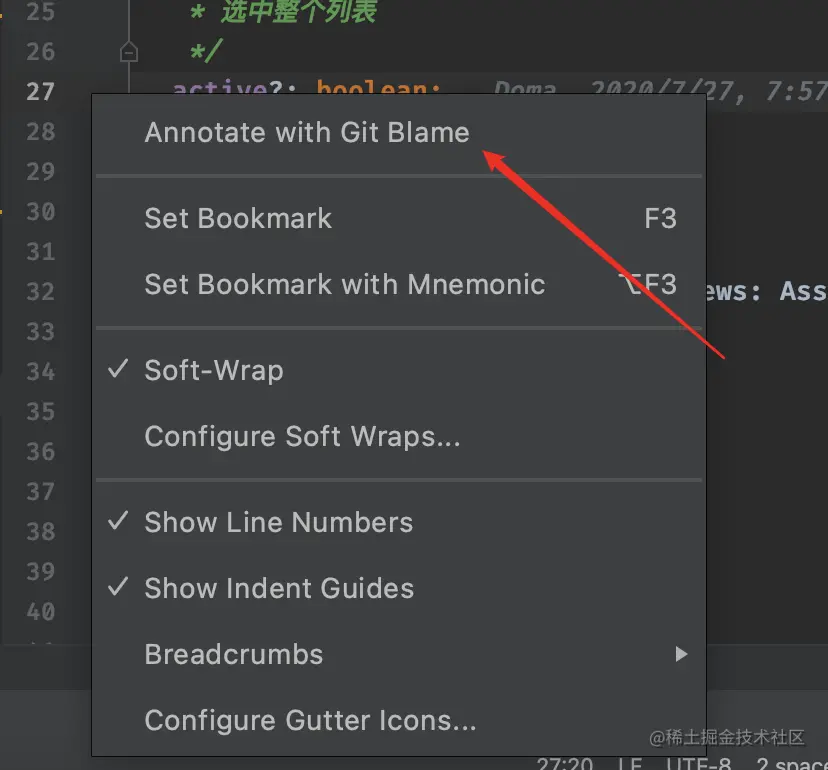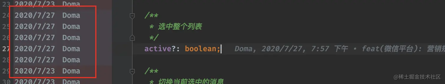 以前用vscode写代码安装了git的插件就能看到这个行代码是谁写的,在webstrom中我们一样可以