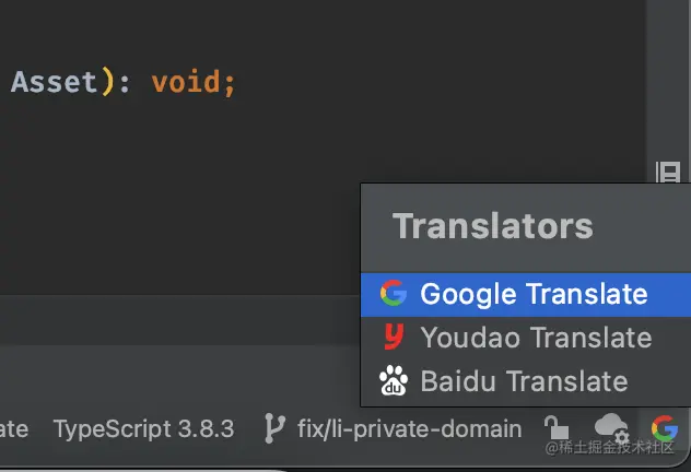 - 如果不想用谷歌翻译可以,可以选择有道和百度,在webstorm右下角选择,不过有道和百度要登陆账号密码才能用,建议使用谷歌就可以