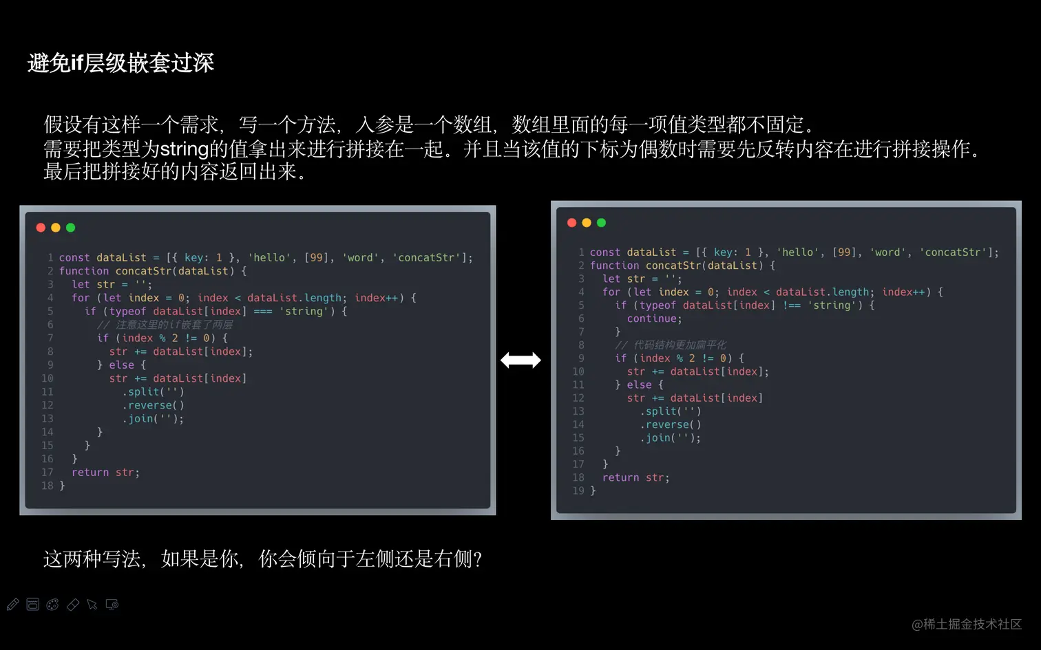 if-else在程序设计中是不可避免的,作为程序员能做的就是减少嵌套,提升代码的可阅读性和质量