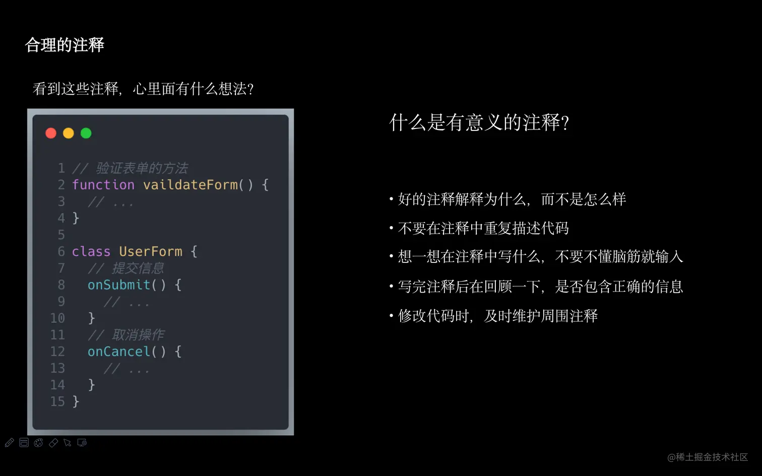 学会只编写够用的注释,过犹不及,应当重视质量而不是数量