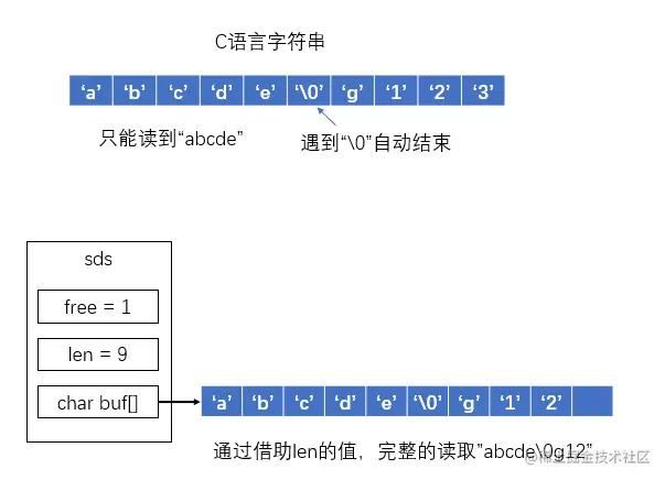 在C语言中通过判断当前字符是否为'\0'来确定字符串是否结束,而在sds结构中,只要遍历长度没有达到len,即使遇到'\0',也不会认为字符串结束。根据这一点,我们就可以使用Redis缓存诸如图像、音频、压缩文件的二进制形式。