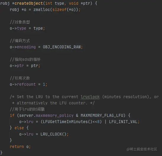 所有redis对象都会存在一种对象头的结构,这个对象头记录了数据的type(类型),encoding(编码方式),lru(用于lru相关缓存淘汰策略机制的时间戳),refcount(引用次数)和ptr(指向sds的指针)