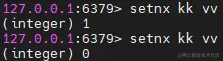 我们可以看到,我们第一次执行这个命令的时候返回了1(代表成功),第二次执行却返回了(0),代表失败,因为第二次执行的时候这个键已经存在了,则必然失败。