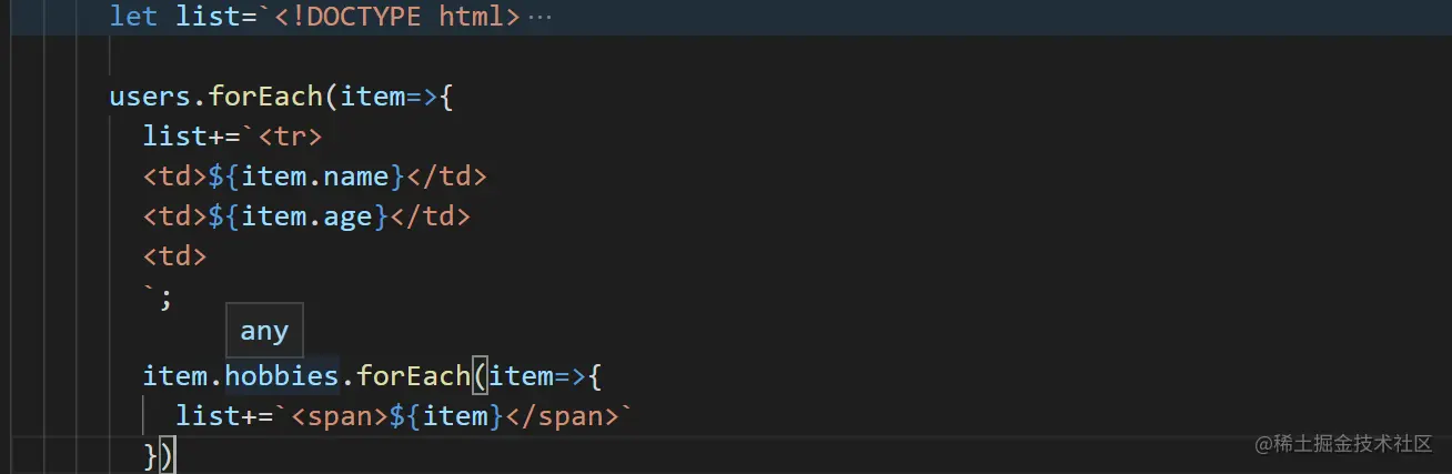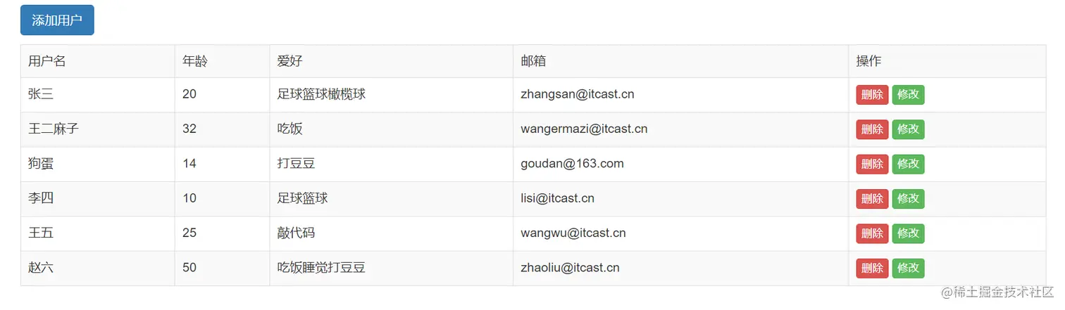 循环users,展示其中的数据,进行字符串的拼接