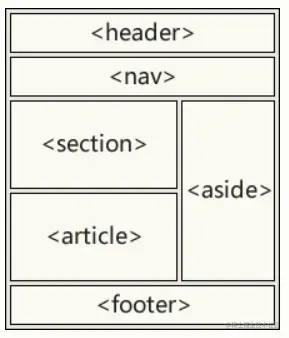 header表示网页的头部main表示网页的主体部分(一个页面中只会有一个main)footer表示网页的底部nav表示网页中的导航 aside 和主体相关的其他内容(侧边栏)article表示一个独立的文章section表示一个独立的区块,上边的标签都不能表示时使用section