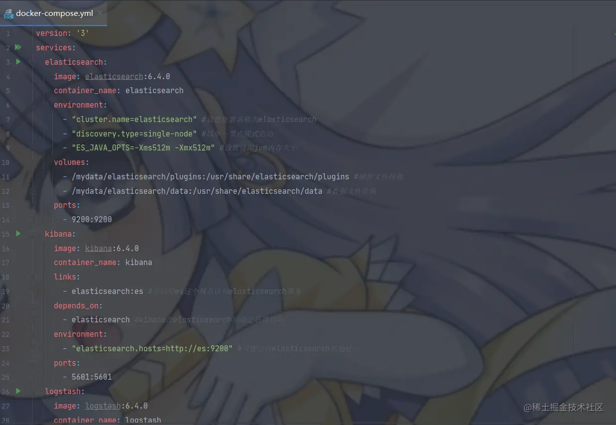 - elasticsearch:es #可以用es这个域名访问elasticsearch服务