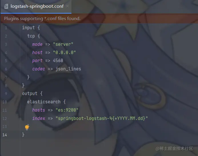 logstash-springboot.conf (文件的格式是我手动对齐,如果起不来需要确定文件的格式)