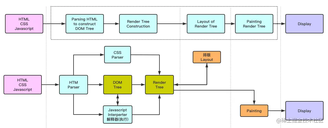 - DOM树表示页面结构,渲染树表示DOM节点如何显示