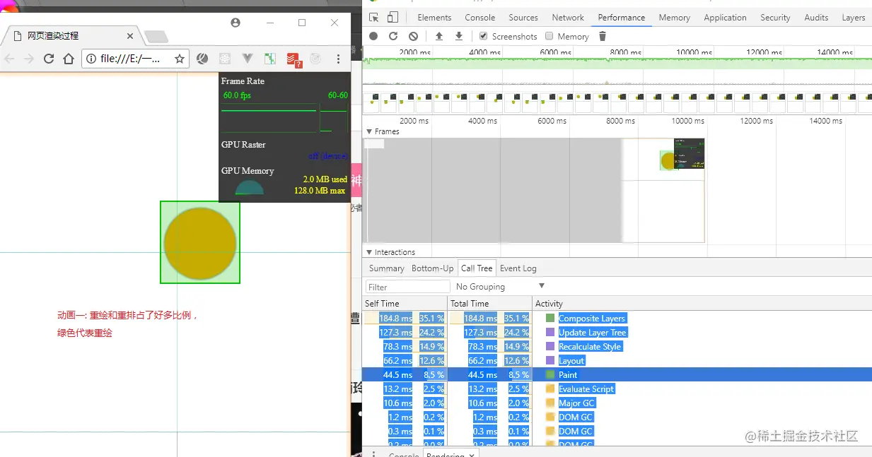 - 1.在整个动画的每一帧中,浏览器都要去重新布局,绘制页面,并把最新的位图对象加载到GPU