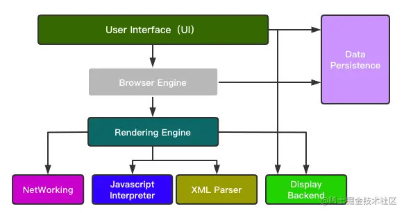 - Browser:地址栏目、书签、后退和前进,网络请求、文件访问等